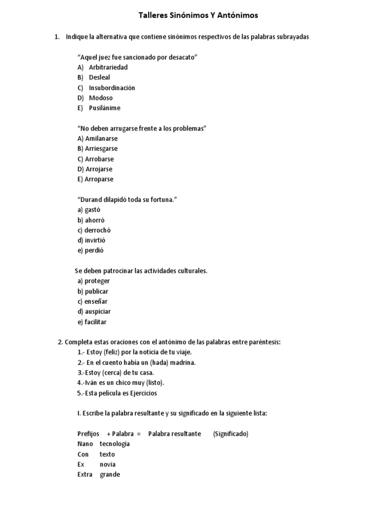 Talleres Sinonimos Y Antonimos