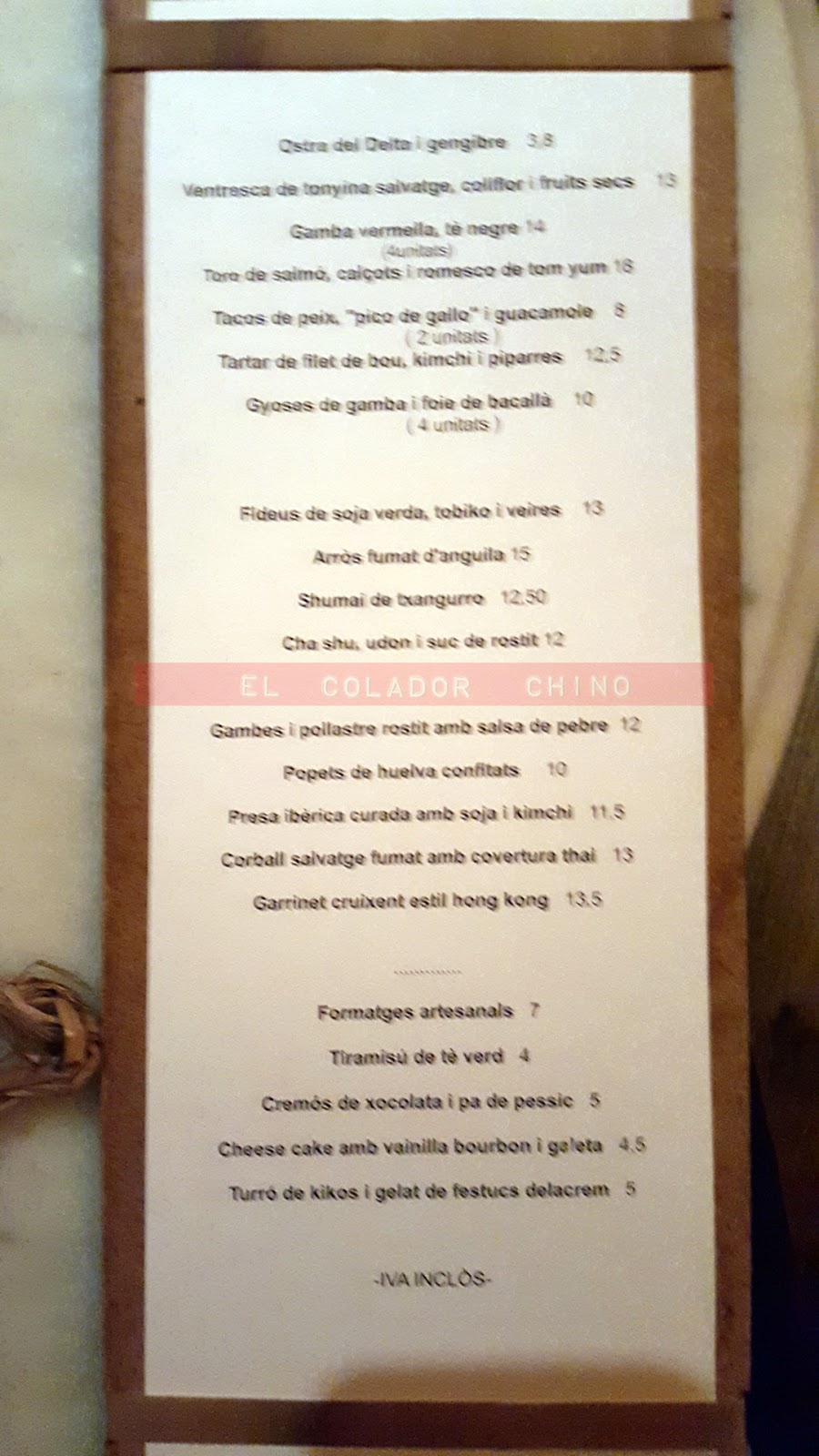 Carta Picture Of Casa Xica Barcelona Tripadvisor