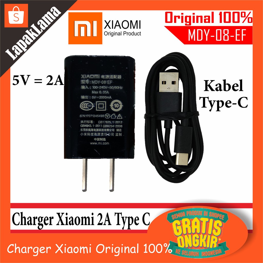 Charger Xiaomi Mi 8 Lite Original 100 Usb Type C 5v 2a Usa Harga