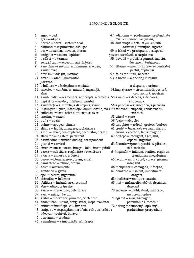 Dictionar De Sinonime Neologice