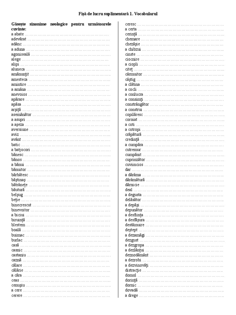 Găsește In Coloana Din Dreapta Sinonime Neologice Pentru Cuvintele