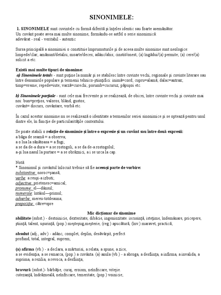 Categoriile Semantice Ale Vocabularului Sinonime Antonime Doc