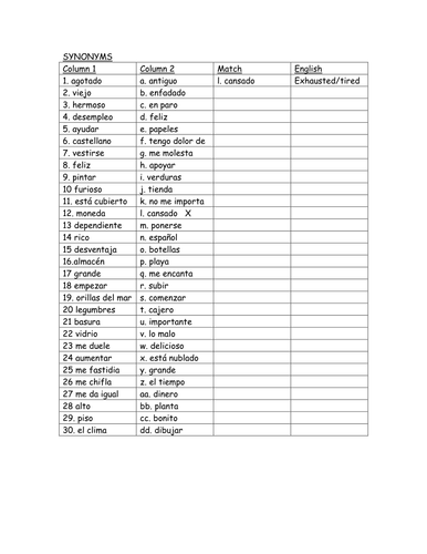 Spanish Gcse Vocab Revision Synonyms Teaching Resources