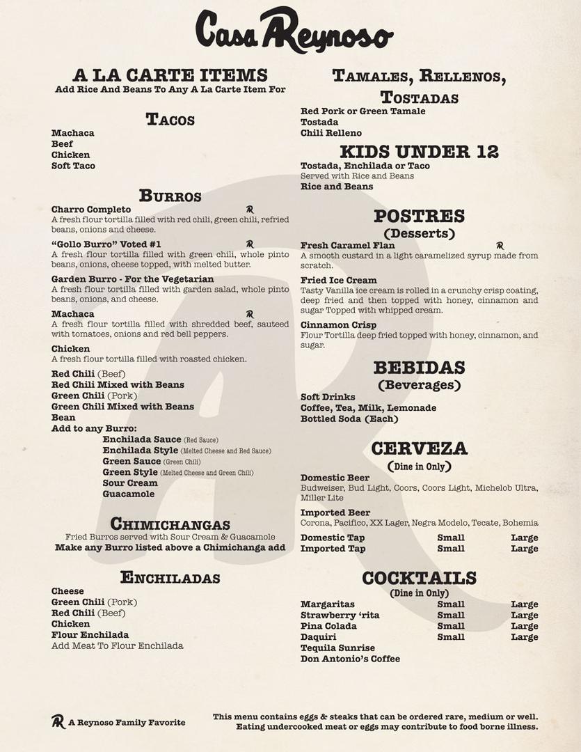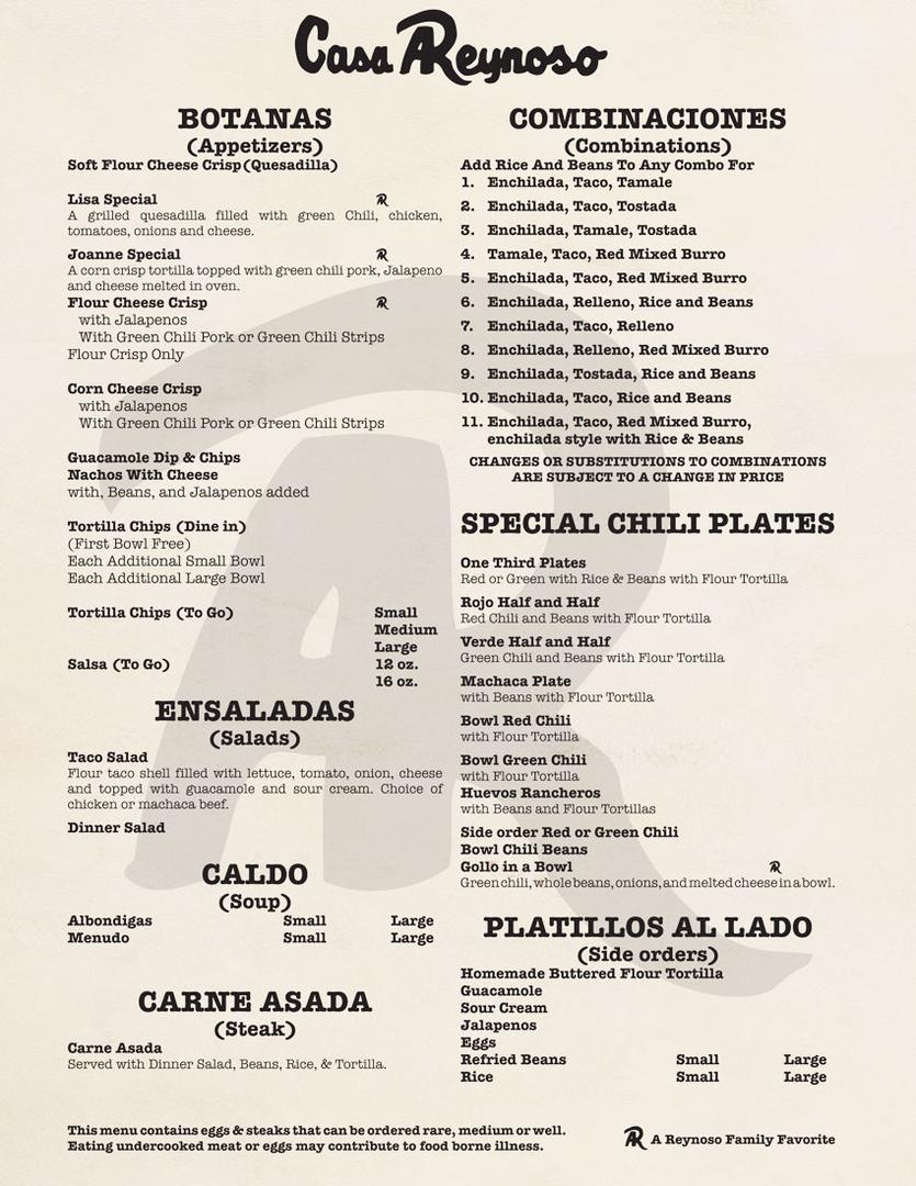 Xj S Casa Reynoso Home Gilbert Arizona Menu Prices